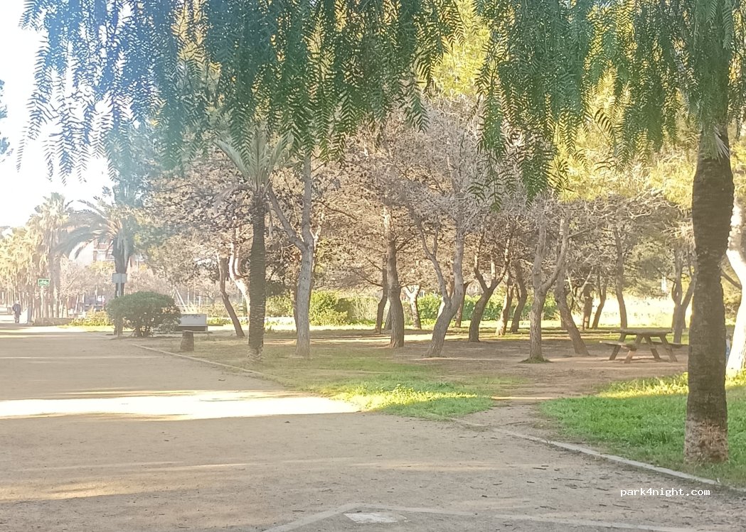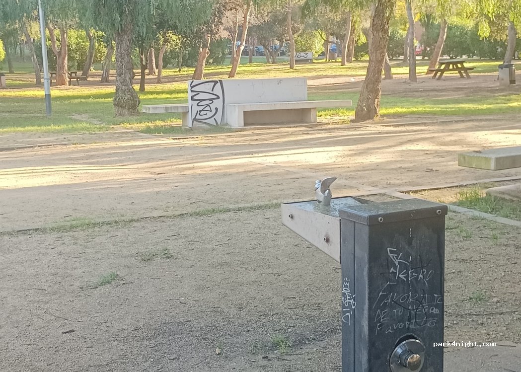 It's a fairly flat spot; the only downside is its proximity to the road, but if you park as far away as possible at night, you can get a good rest. There are picnic areas, a churrería (a type of French street food stall), and a five-a-side football pitch right next door, ideal for children and pets. There's also a water fountain in the park next to it.