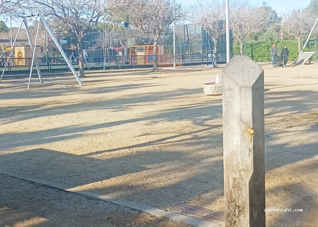 Un endroit assez plat, le mauvais c'est qu'il est à côté de la route mais en se garant le plus loin possible la nuit, on peut bien se reposer et il y a des aires de pique-nique et de churrería et un terrain de foot à cinq juste à côté à côté, idéal pour les enfants et les animaux, et il y a aussi une fontaine à eau dans le parc à côté