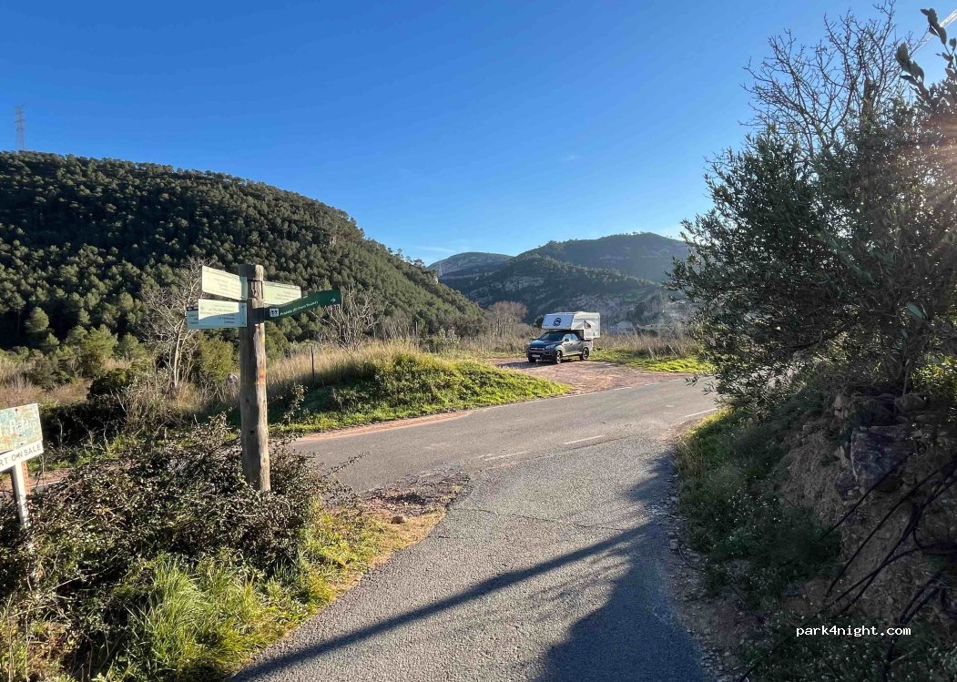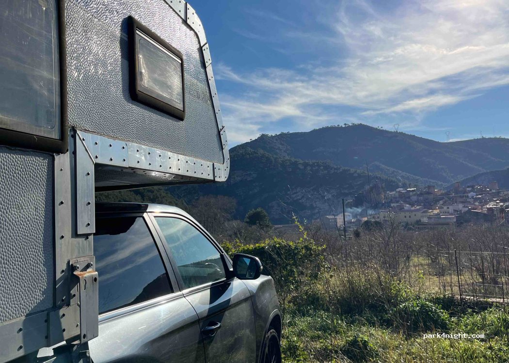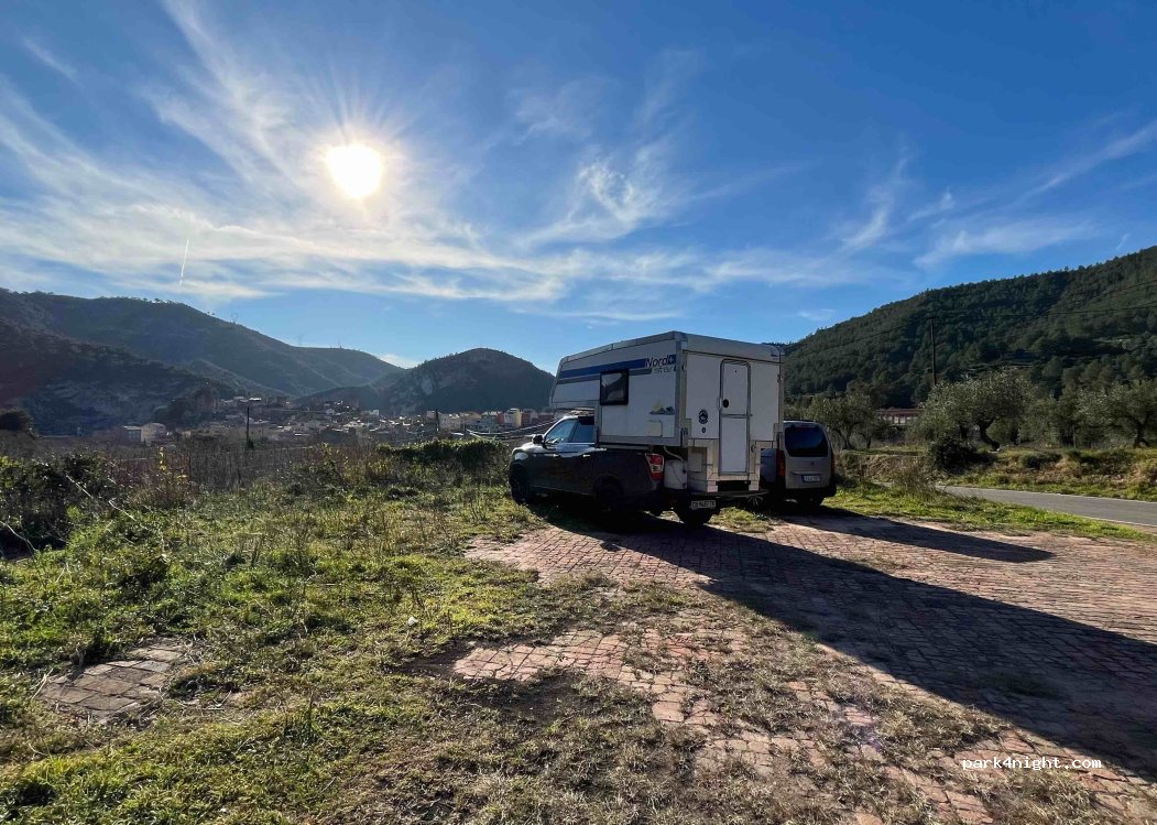 Un petit parking pour plusieurs camping-cars. Vue imprenable sur le village. De là, il y a de nombreux sentiers de randonnée dans les montagnes. C'est à côté de la route, mais peu de voitures passent.