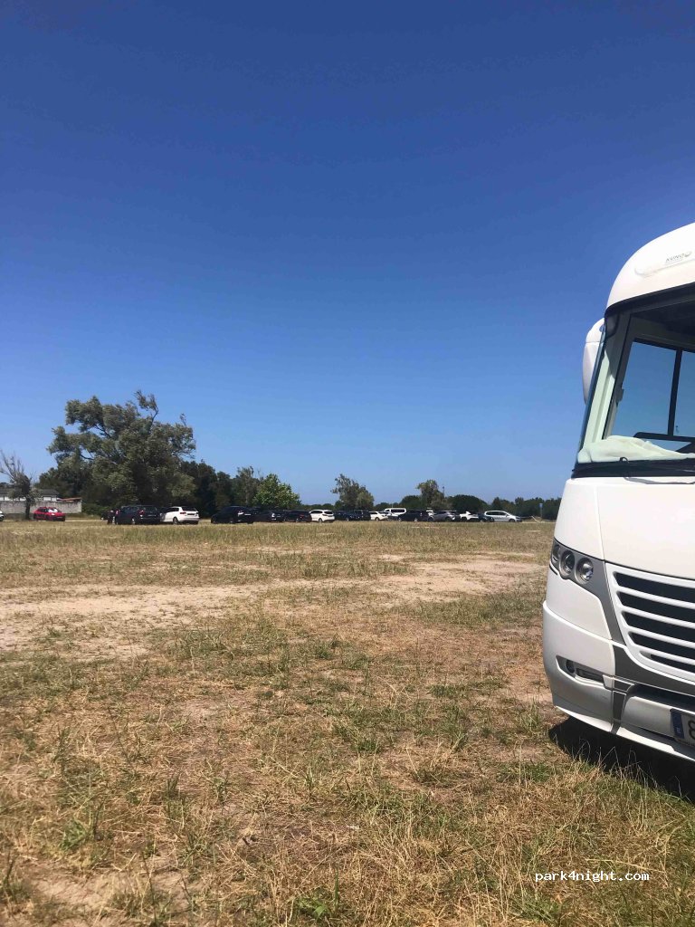 Very large esplanade to park next to the beach, very quiet, no noise, with a bar next door with a good atmosphere, good food and a good terrace