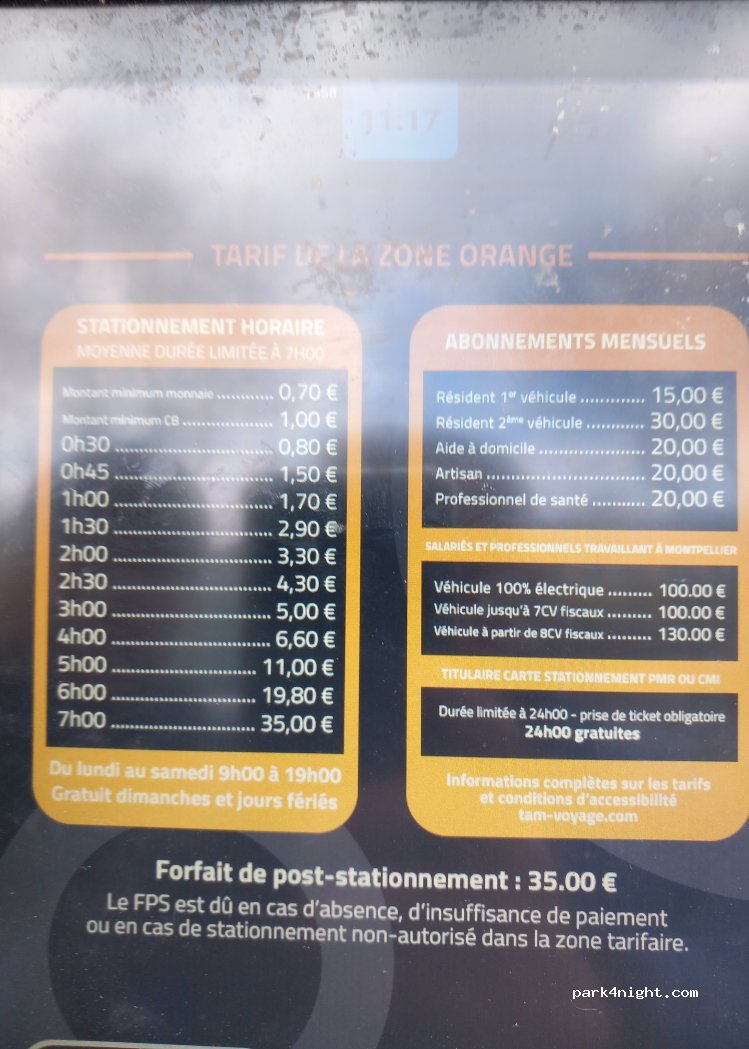 3 places de parking aux dimensions Campingcar, payantes sauf de dimanche