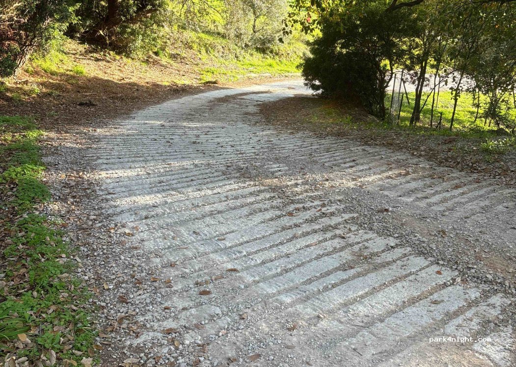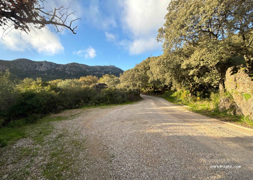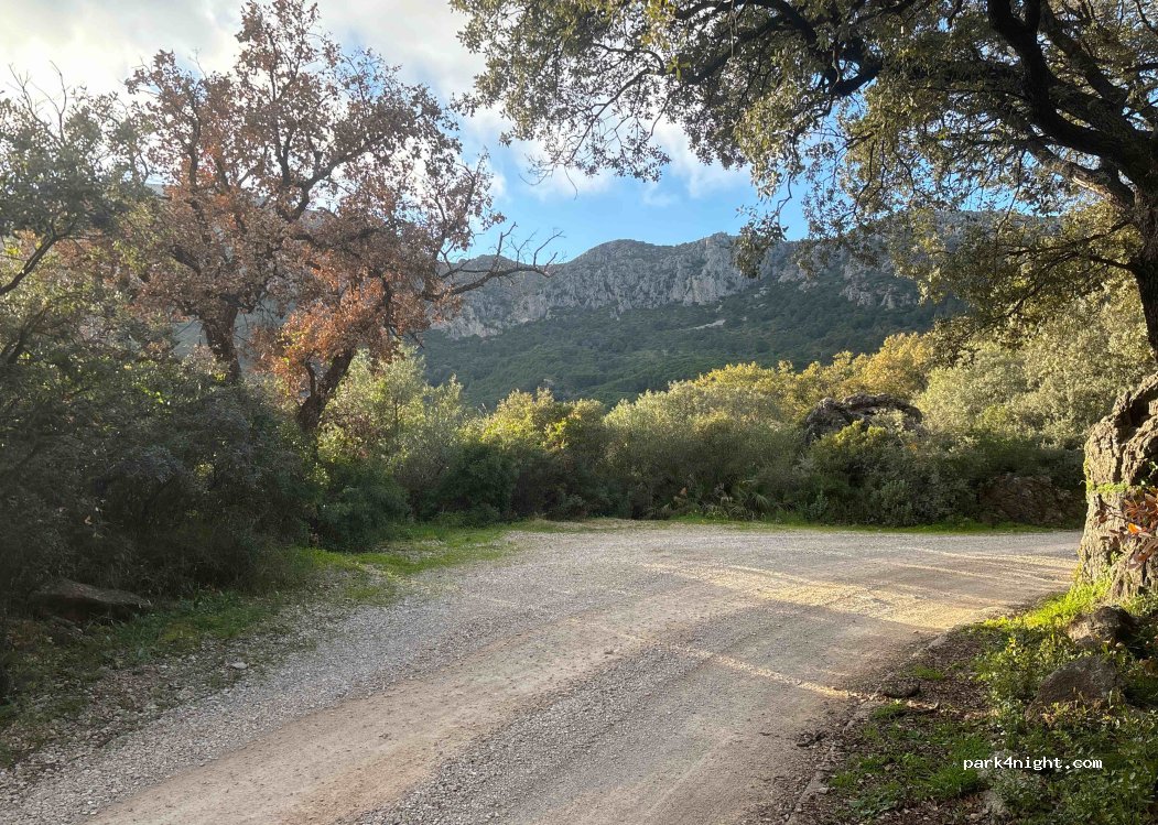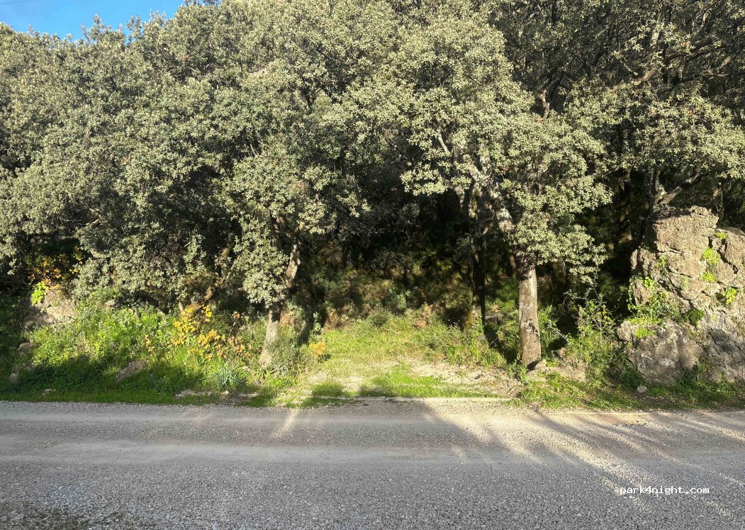 Platz am Straßenrand Richtung Wanderweg ohne Gegenüber. Wohnmobil -7,5 m oder zwei Transporter. Zusätzlich Platz auf der anderen Straßenseite für leichte Fahrzeuge vom Typ T5. Flaches Land. Schwieriger Aufstieg.