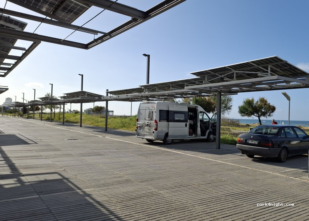 Super schöne Aussicht. Aber Achtung ist überdacht. Vorher schauen, ob der Kastenwagen bis maximal 5,40 Meter unter das Dach passt. Denkt dran, dass das ein Parkplatz ist und Camping Verhalten absolut verboten ist.