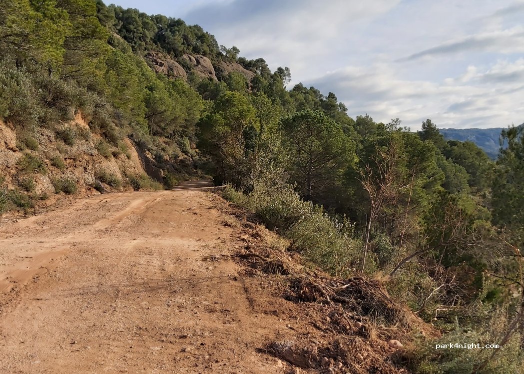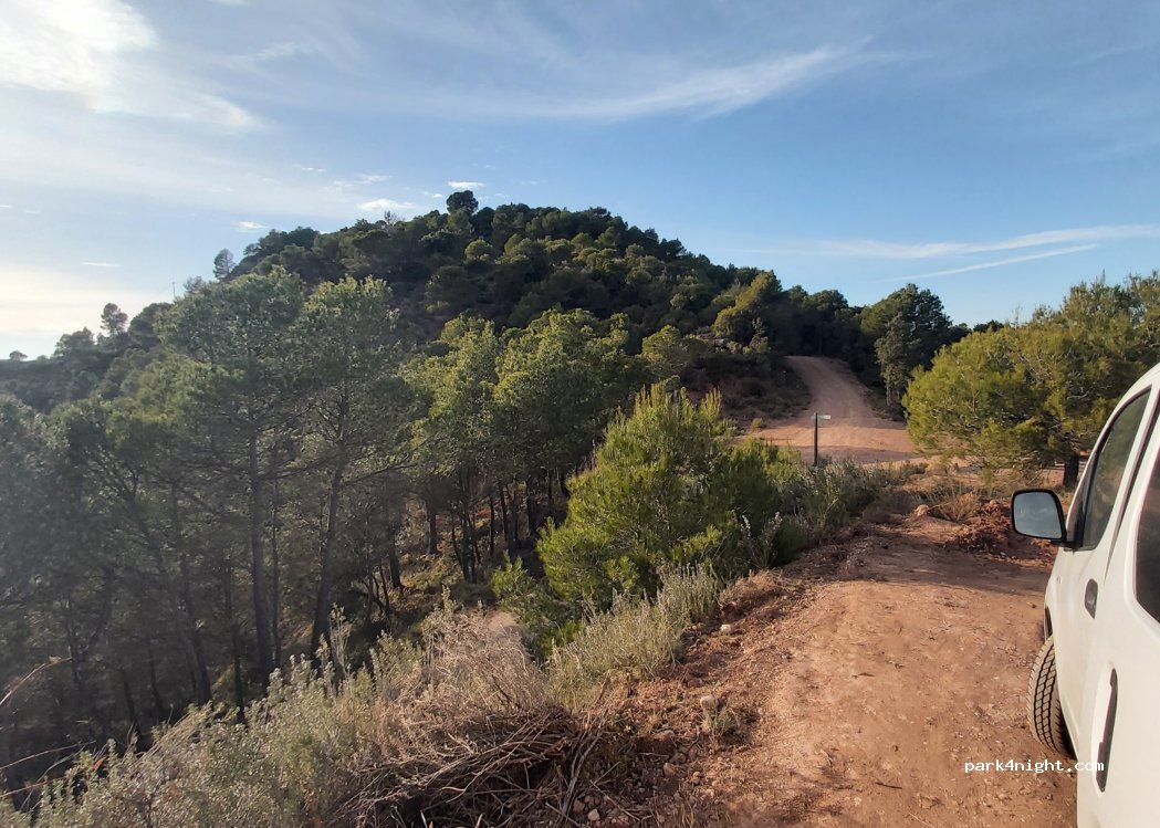 Mini espacio para un coche en medio de un camino de sendero. un poco en pendiente. Nosotros lo utilizamos para comer, no pernoctamos.