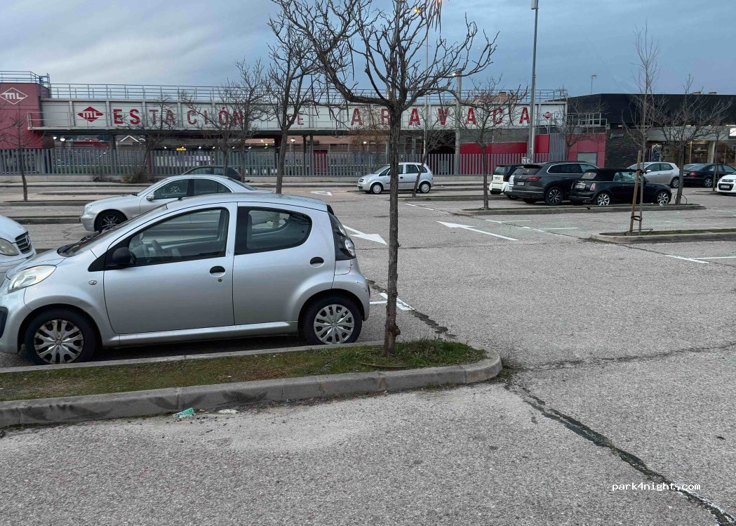 Estacionamiento del metro, no hay carteles de prohibición, se ve que los residentes también dejan sus vehículos por el tema del ZBE, a pasos de la estación del metro para recorrer el centro de madrid, a una cuadra de baño público. Pasamos 2 noches sin ningún problema, estacionamiento en la calle para autocaravanas como la nuestra de 7,5mts es complicado, queda sobre la calle, por eso elegimos este lugar.
