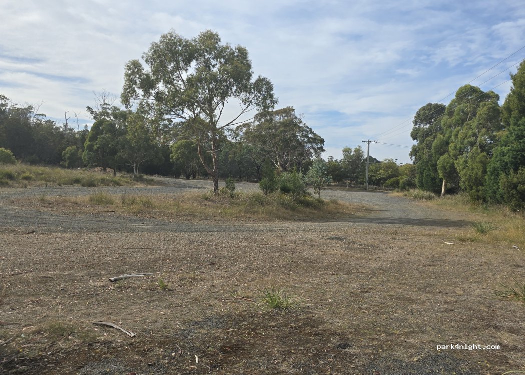 Es un gran aparcamiento al lado de la carretera, al pie de una escuela abandonada. No hay señales que prohíban acampar, no hay servicios, tenga cuidado de llevarse su basura cuando salga.