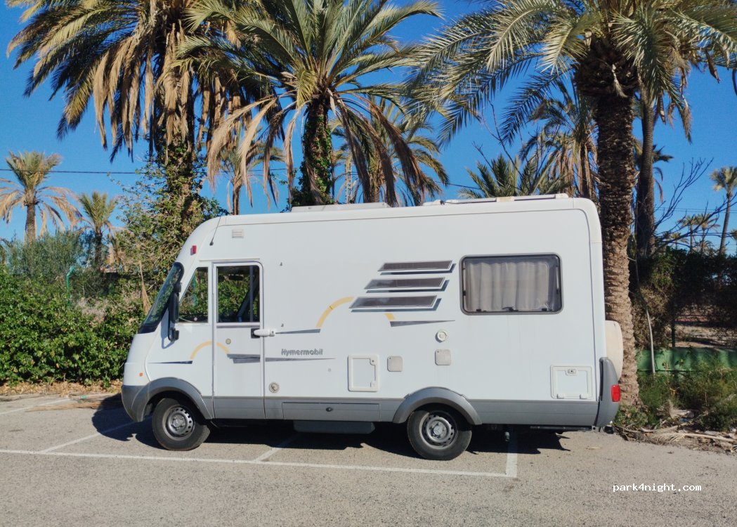 Parking lot next to sports centre with gym, tennis and pádel courts. Possible access to showers. Good restaurant, and café. Easy access and level parking area. Quiet at night, some road noise in the morning.