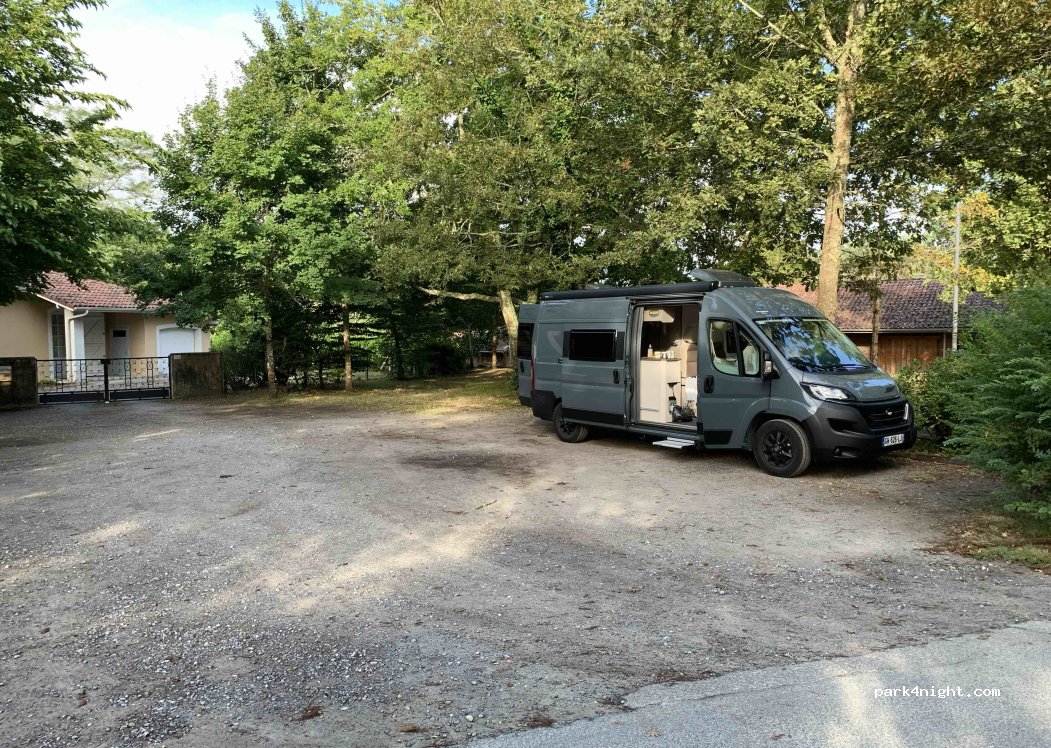 Aparcamiento en el centro de Castets. Tiendas cercanas, una panadería con pasteles y pan riquísimo a 5 minutos andando, en la carretera. Tranquilo por una noche. Con mesas de picnic y librería para intercambio de libros. Pista de fútbol y área de juegos.