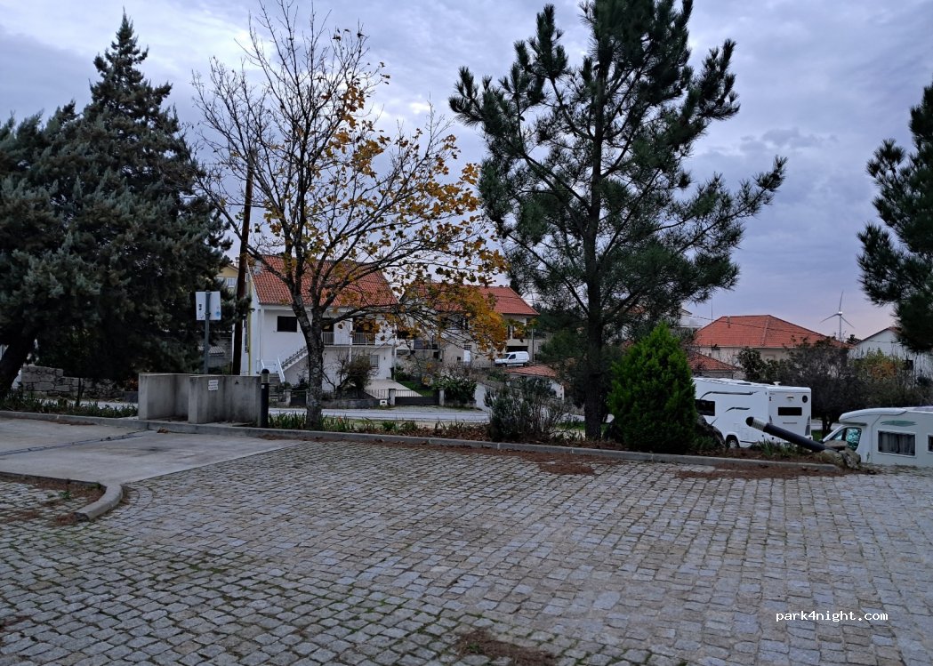 Buen lugar para pasar la noche, tranquilo. Al lado de Sortelha, merece la pena visitarlo. Hay agua y para vaciar.