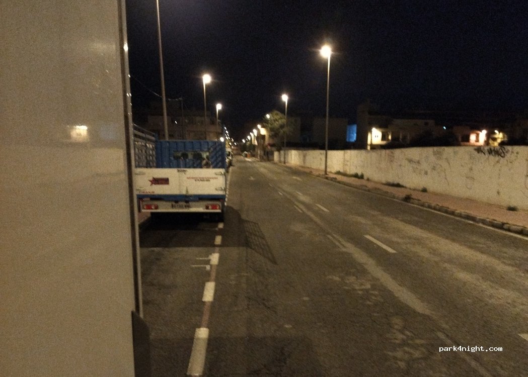 Calle tranquila de noche en la que apenas pasan coches. Está a 10 minutos andando de la playa. Hay que tener en cuenta que la descripción la hago en febrero. No creo que sea lo mismo en verano.