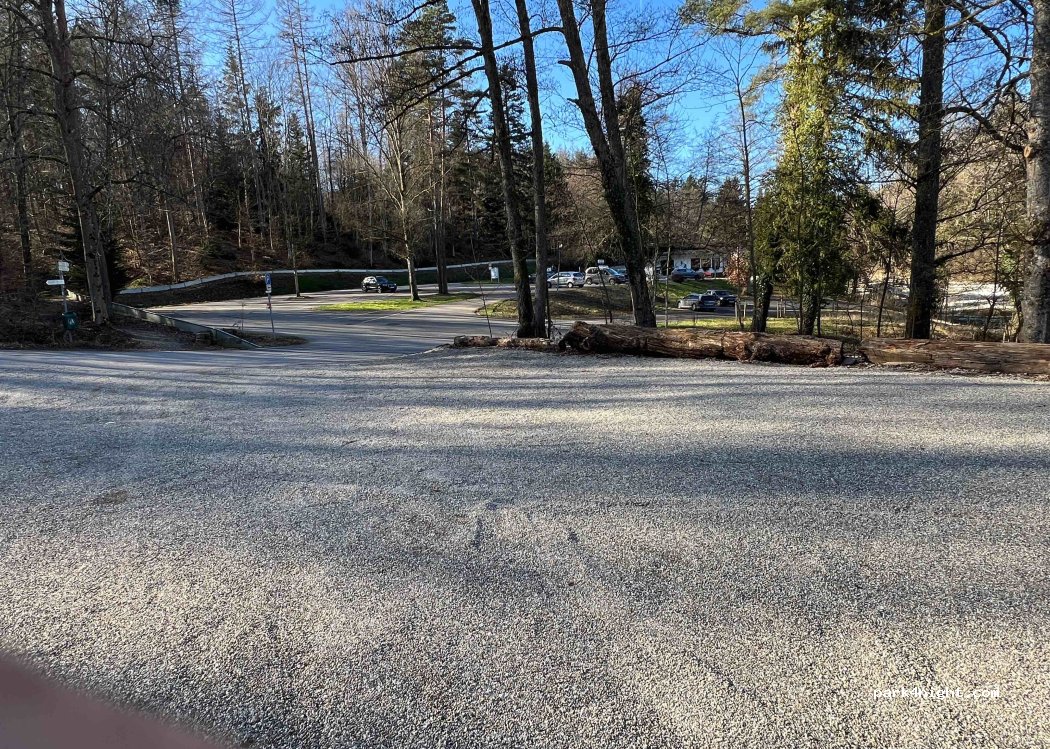 Great location and quiet. Two new, large parking spaces above the swimming pool, or rather the old parking spaces. Ground covered with fine gravel, slight unevenness can be leveled out with wedges. Many hiking opportunities on well-signposted paths. Italian-style Waldseebad restaurant. Approx. 1 km to the nearest shop and 1.4 km to the town. From June to September the spaces can be occupied by swimming pool guests during the day.