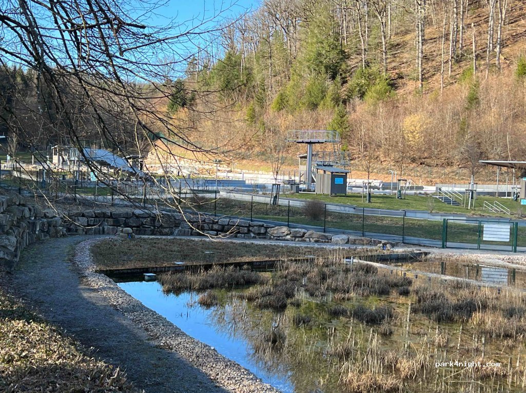 Super Lage und ruhig. Zwei neue, große Parkplätze oberhalb des Schwimmbades, bzw. der alten Parkplätze. Boden mit feinem Kies bedeckt, leichte Unebenheiten können mit Keilen ausgeglichen werden. Viele Wandermöglichkeiten auf gut ausgeschilderten Wegen. Italienisch geprägtesRestaurant Waldseebad. Ca. 1 km bis zur nächsten Einkaufsmöglichkeit und 1,4 km bis in die Stadt. Von Juni bis September können die Plätze tagsüber durch Schwimmbadgäste belegt sein.