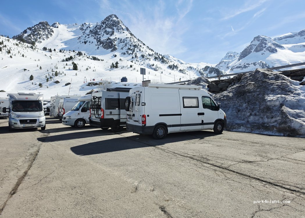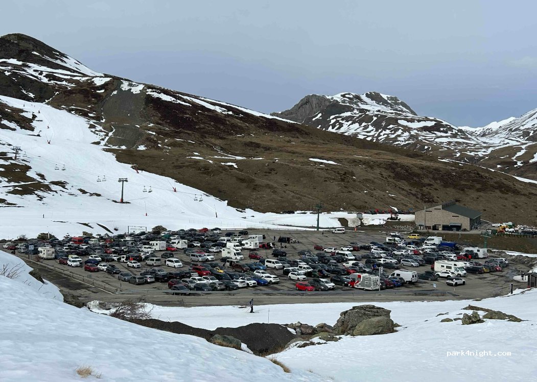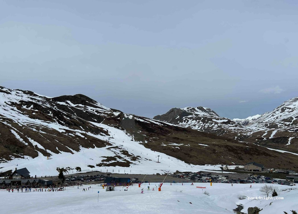 Parking in the Anayet sector of the Formigal ski resort, perfect for typical winter sports, which is half full during the week and offers good parking. Weekends must be quite complicated as there are practically no options for large vehicles. Just on the upper level there is another paid parking lot. In summer this parking lot is closed.
