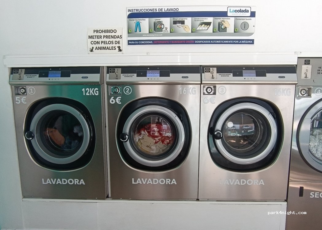 Washer 5€/12kg 6€/16kg, drying 1€