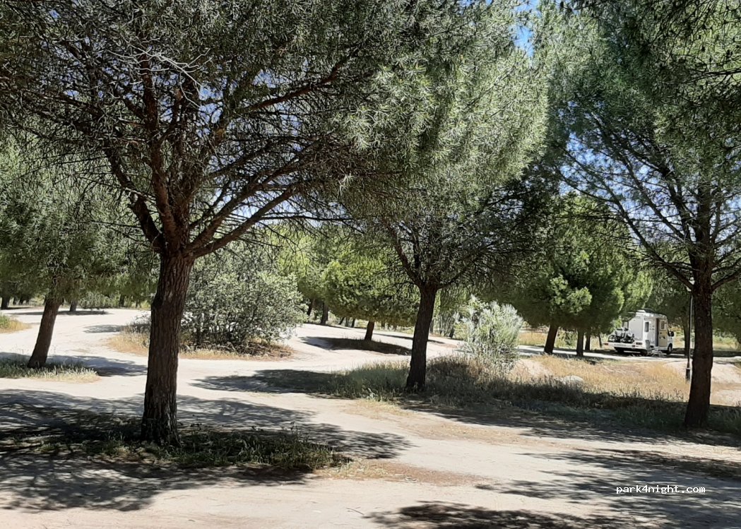 Sitio sin grandes aspiraciones, tranquilo y con sombra, sin más servicios, con un solo chiringuito (mejor reservar si quieres comer/beber en el exterior) se puede estar tranquilo acompañado de otros compañeros de ruta, no creo que tenga problemas en pernoctar.