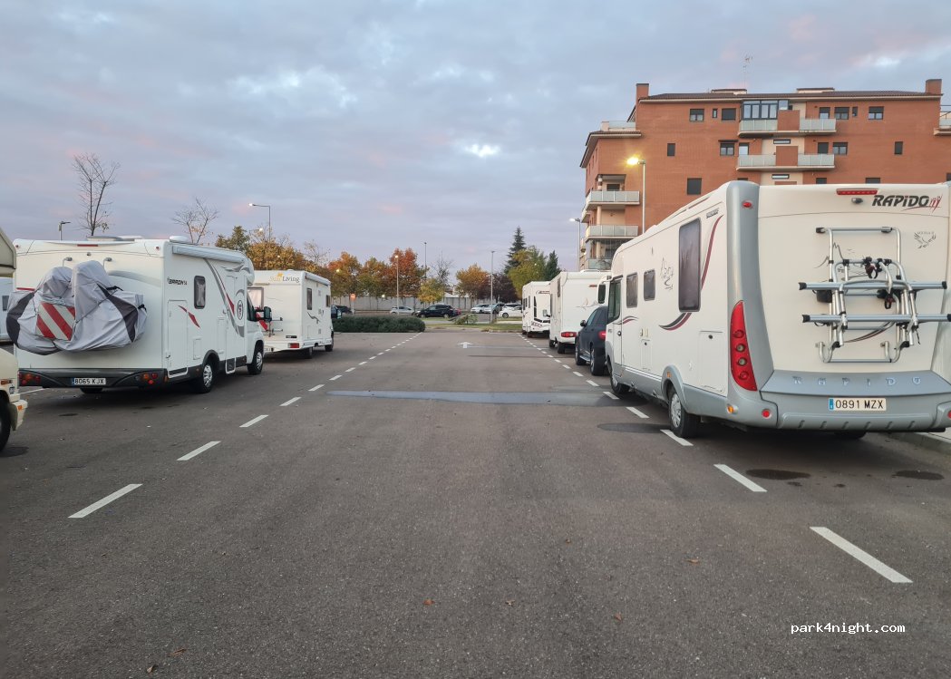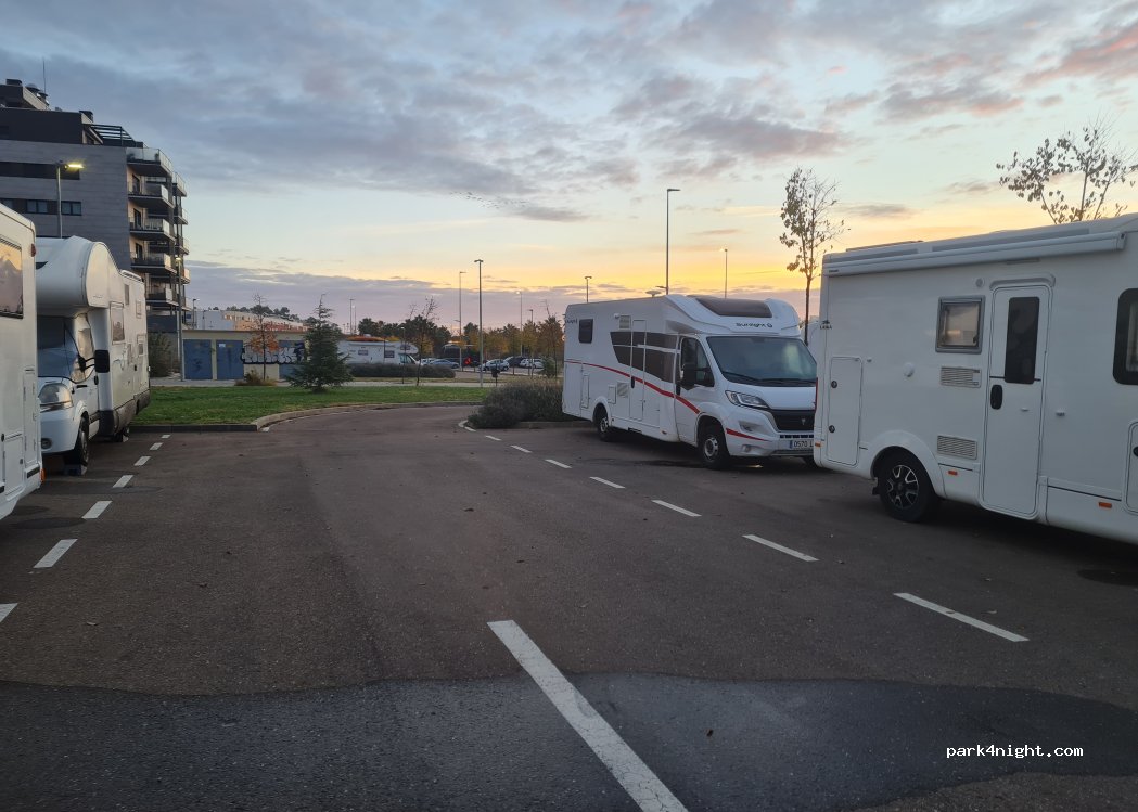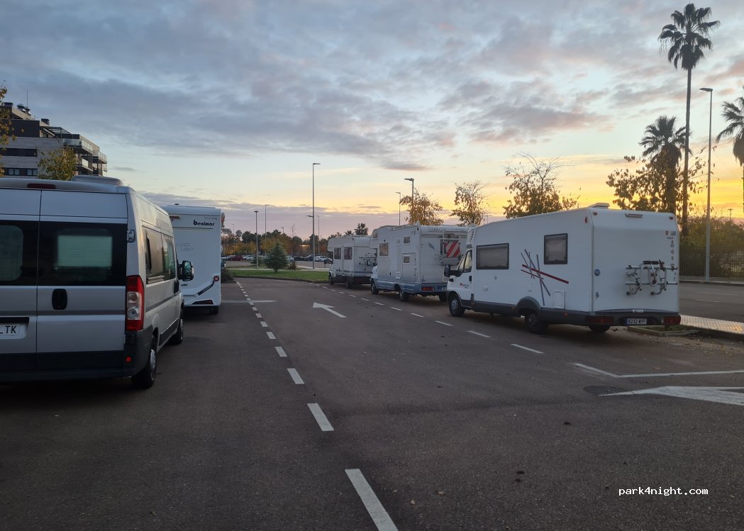 Bon emplacement de parking lorsque le camping-car est plein. Accès au centre-ville par le vieux pont en face de la Puerta del Sol. Ok pour passer la nuit.