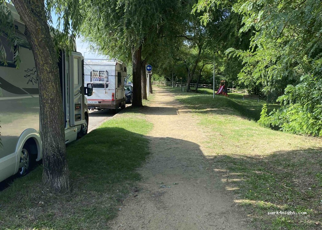 Am petrecut noaptea aici, parcarea este foarte luminată, există parcare de-a lungul străzii unde se pot parca autorulote sau VAN-uri mai mari de 6m. Problema locului de parcare este lățimea nu lungimea, locul de parcare este destinat autoturismelor, iar un camper foarte lat ar fi prea în șosea. Nu ne-a deranjat nimeni și nimic, iar strada a fost foarte puțin circulată în timpul nopții...