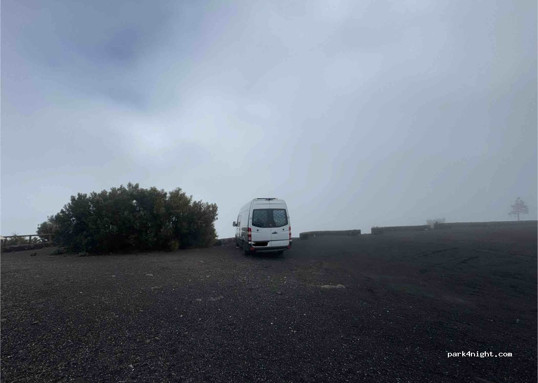 At the highest point of El Hierro there are 5 parking spaces. If you are lucky and there are no clouds then there is a spectacular view. At a transmission tower so good mobile reception. The road to it is gravel but good to drive on. A bit narrower than the previous road. At 1500 meters altitude so cold in the evening/night.