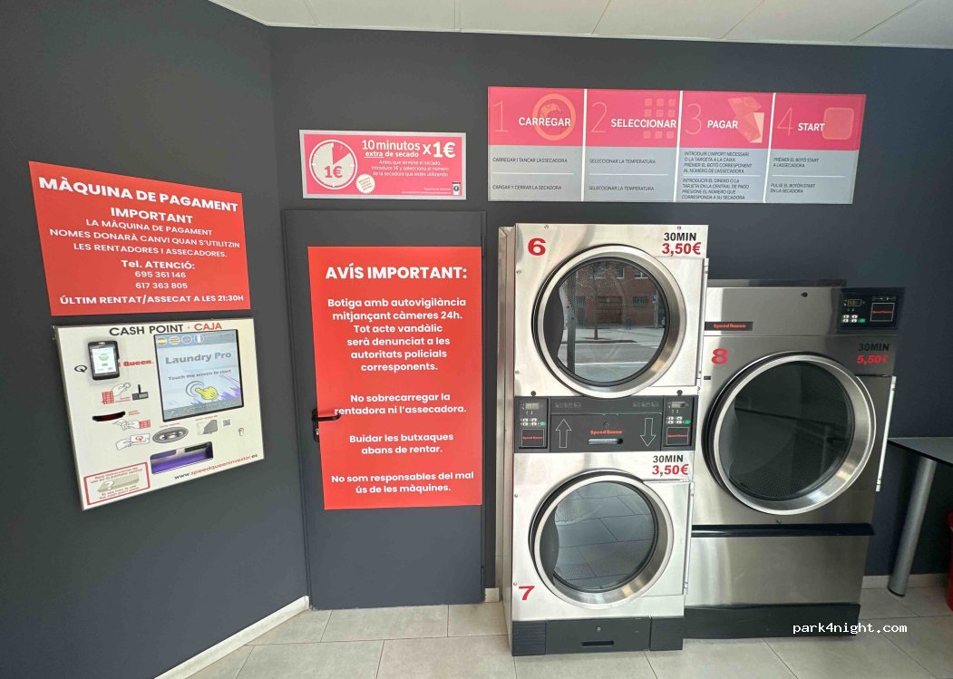 Muy buena lavandería. Dispone de máquinas grandes y pequeñas, ambas con opción de detergente propio o incluido. Pago en efectivo o con tarjeta.