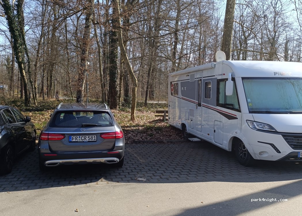 Thermenparkplatz, sehr ruhig unter den Bäumen. wir können das Fernsehen ohne Probleme empfangen.