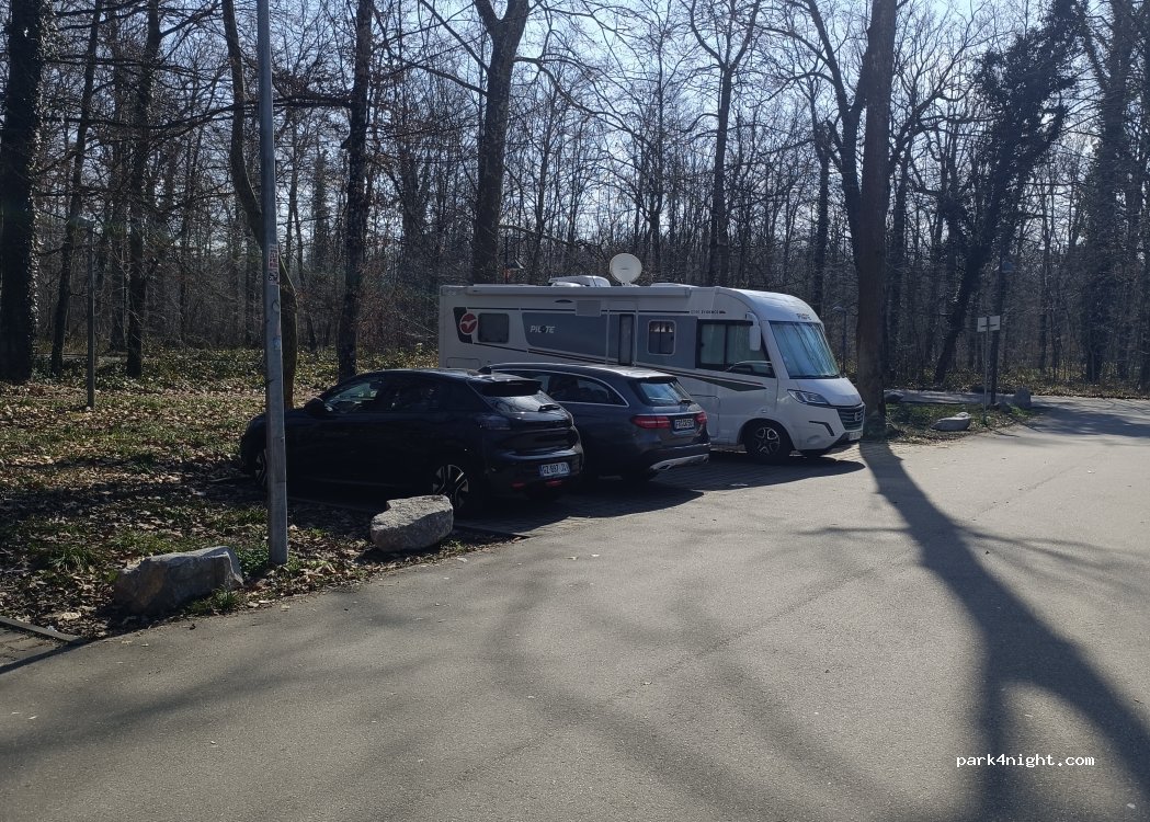 Parking of the thermal baths, very quiet under the trees. We can pick up TV without any problem.