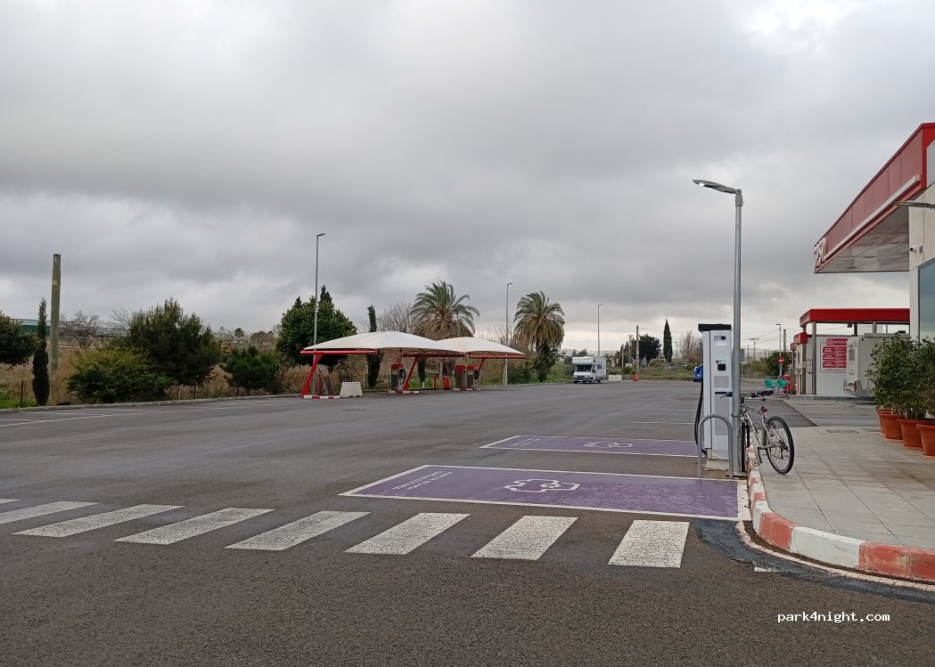 Gas station parking, perfect for a stopover, very spacious and with a bike path that takes you to Murcia city in 15 minutes. The restrooms are super clean and outside the gas station booth.