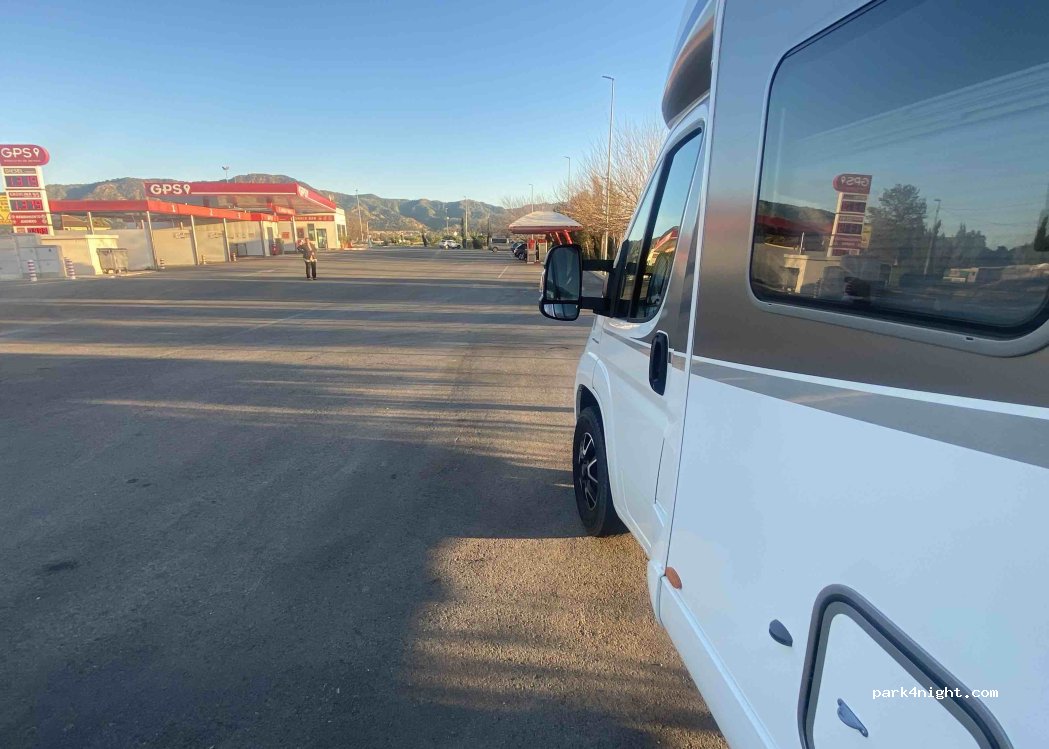 Parking de station-service, parfait pour une escale, très spacieux et avec une piste cyclable qui vous emmène à la ville de Murcie en 15 minutes. Les toilettes sont super bien et à l'extérieur de ce qui est le stand de la station-service
