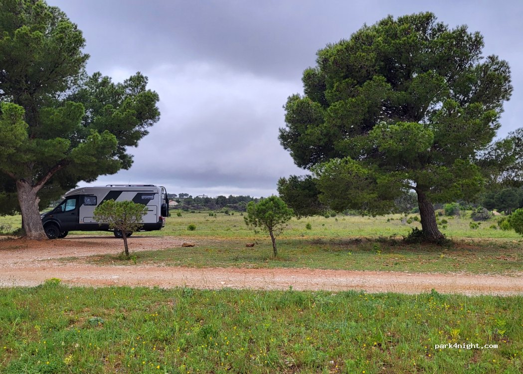 Magnifique emplacement, plat, ombragé, vue sur le château, chant des cigales. Pas de moustiques (il y a beaucoup de vent en ce moment). L'autoroute n'est pas loin et on l'entend bien. Mais rien qui n'empêche de dormir ou de se parler. La municipale est passée pour prévenir de ne pas faire de feu. Attention si le GPS vous fait accéder au spot en passant sous la voie ferrée, c'est hauteur 2m