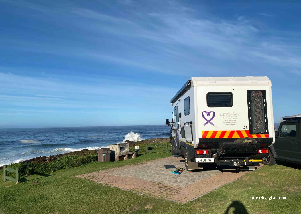 Campingplatz Stormsrivier Mouth im Stormsrivier National Park. Campingplatz mit 100 Stellplätzen direkt an der Felsküste. Jeder Platz bietet Meerblick. Offenes Gelände, also voll im Wind. Kein Schutz, aber das Tosen der Brandung. An jedem Standort gibt es einen Grill, Strom und Mülleimer. Sanitäre Anlagen sind sauber und gepflegt. Sehr wenige Wasserhähne. Ein Süßwasserpool auf den Felsen. Hüten Sie sich vor Pavianen auf der Suche nach Nahrung.