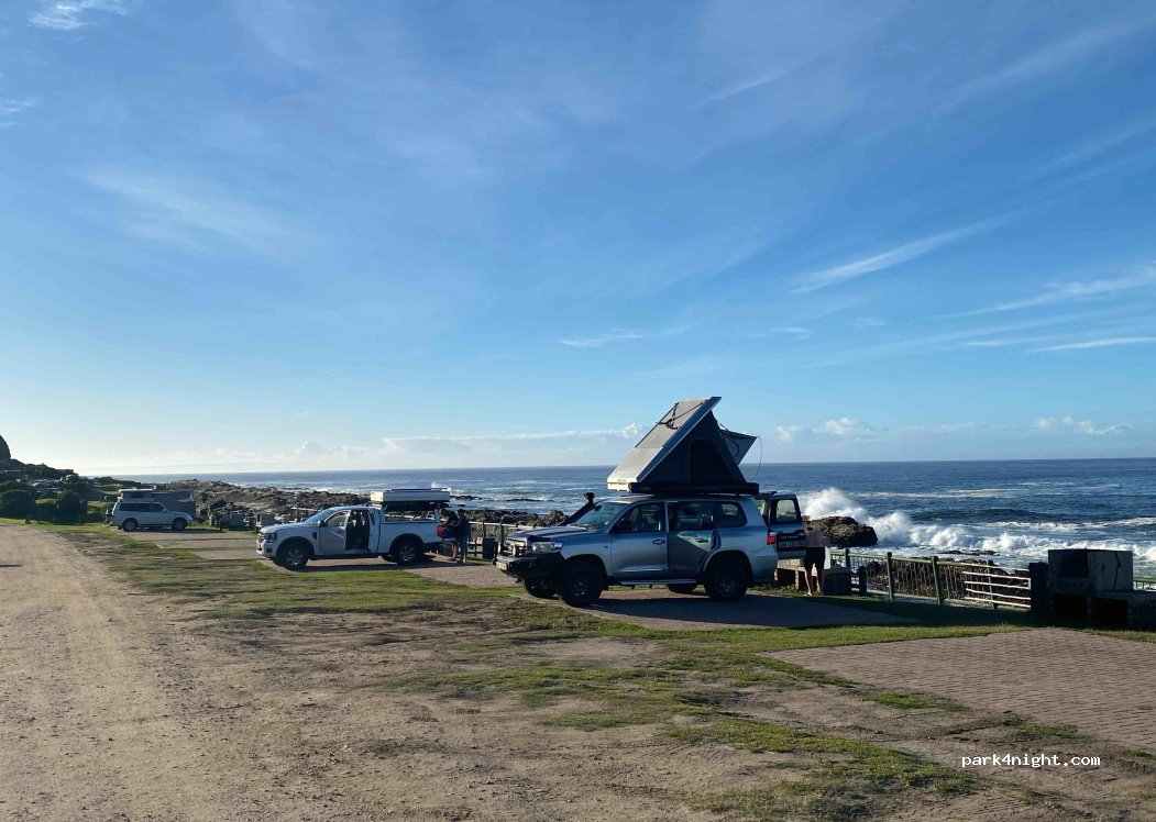Camping Stormsrivier Mouth en el Parque Nacional Stormsrivier. Camping con 100 plazas directamente a lo largo de la costa rocosa. Cada lugar tiene vista al mar. Terreno abierto, por lo que hay mucho viento. No hay refugio, salvo el rugido de las olas. Barbacoa, electricidad y papelera en cada ubicación. Las instalaciones sanitarias están limpias y bien mantenidas. Muy pocos toques. Una piscina de agua dulce en las rocas. Tenga cuidado con los babuinos que buscan comida.