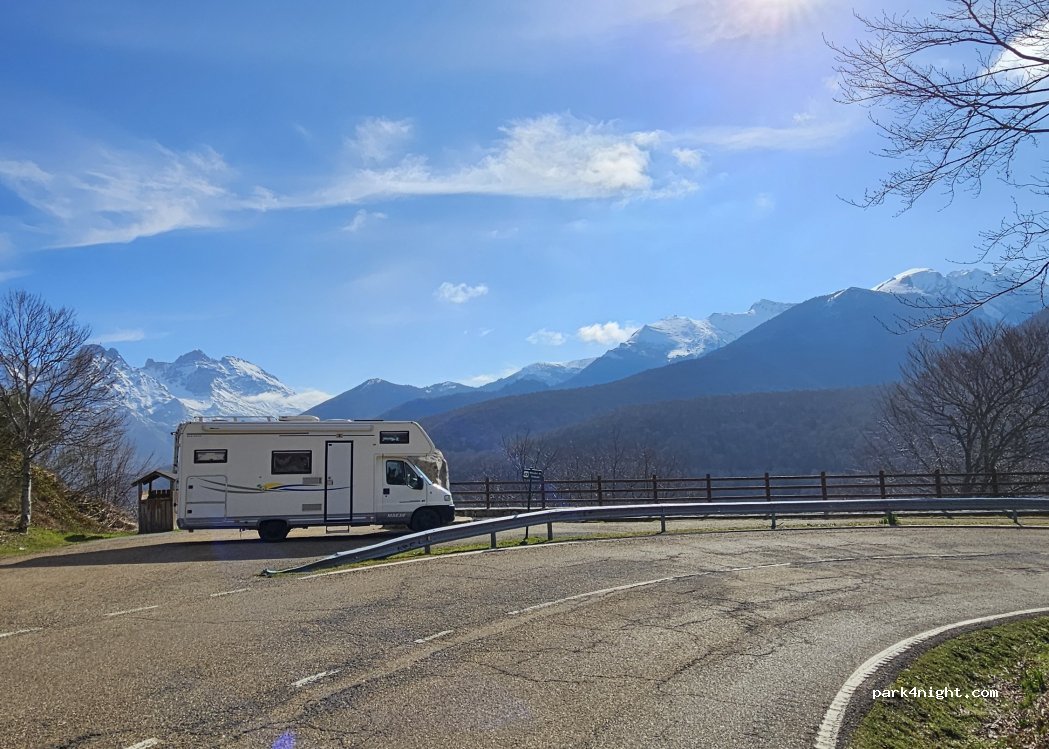 Beautiful spot at the viewpoint. It's at the side of the road, but very little traffic. Amazing views at the mountain tops and on a clear night, you have a beautiful starry sky. It's a little bit steep, but you can level it with some blocks.