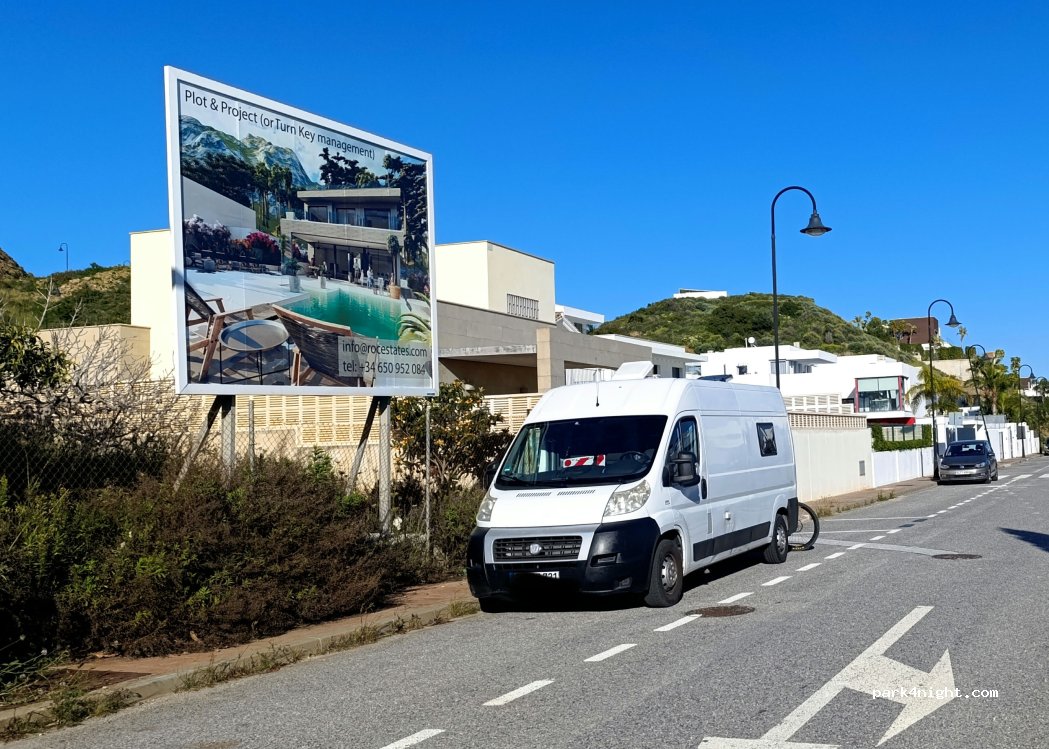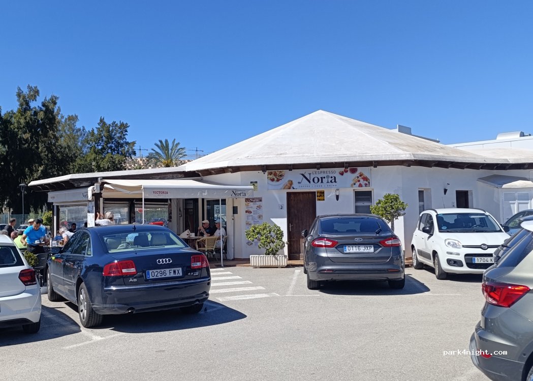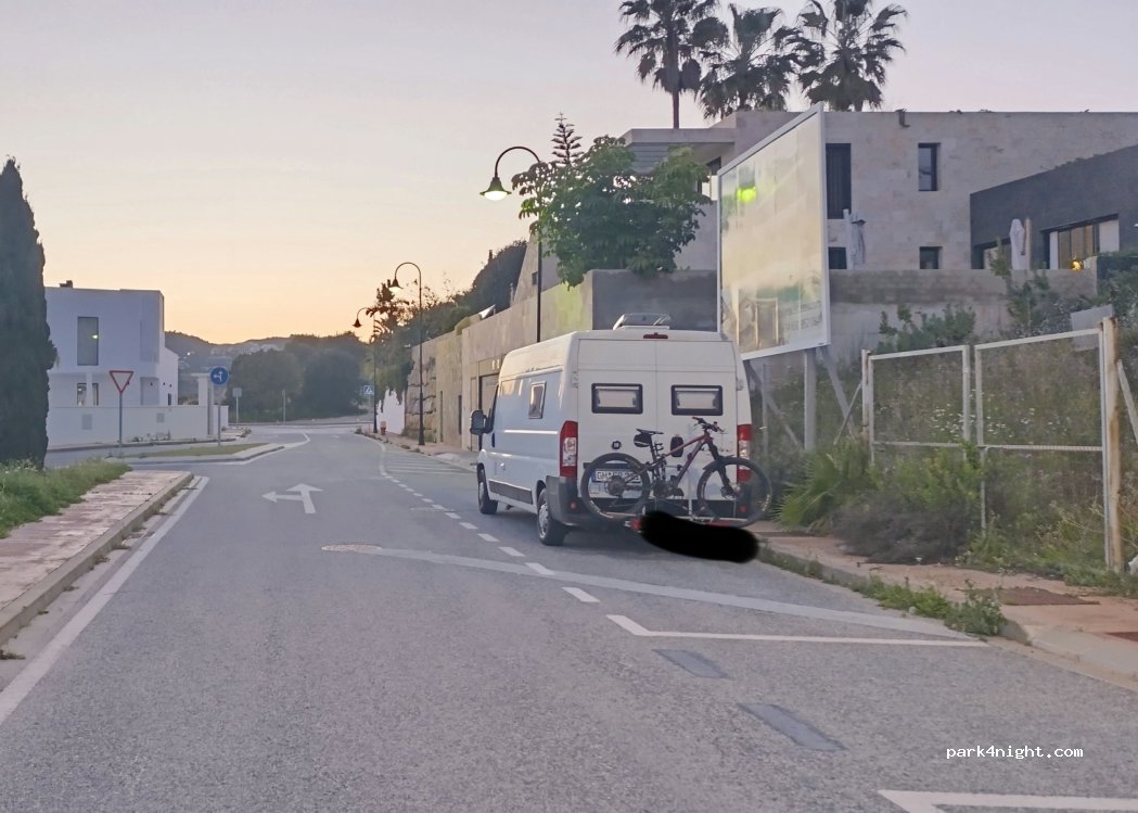 No se puede estacionar, aparcar ni nada, límite de altura 2.10m , una pena , la Cala no admite autocaravanas ni campers , por lo tanto, dónde no nos quieren , mejor no insistir