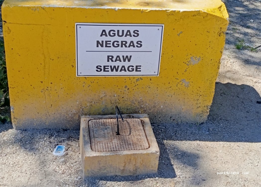 Unos cientos de metros más adelante hay un gran espacio abierto con un desagüe al fondo para vaciar los inodoros. No es posible el vertido de aguas grises y no se permite pernoctar.❗
