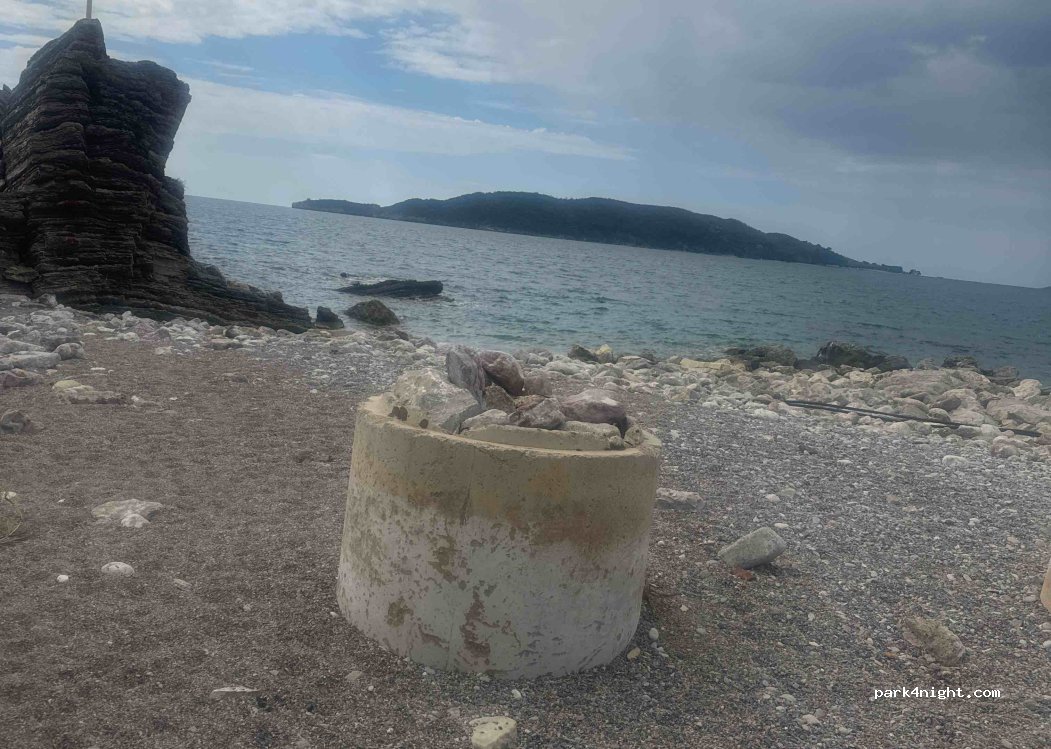 Aparcamiento al borde de la playa, al lado de restaurantes y del túnel (pasar por debajo de un túnel o llegar a otra playa), pasamos con nuestra furgoneta camper de 7m40 pero creo que esto es más adecuado para campistas más pequeños. No nos quedamos a pasar la noche, pero no había restricciones.