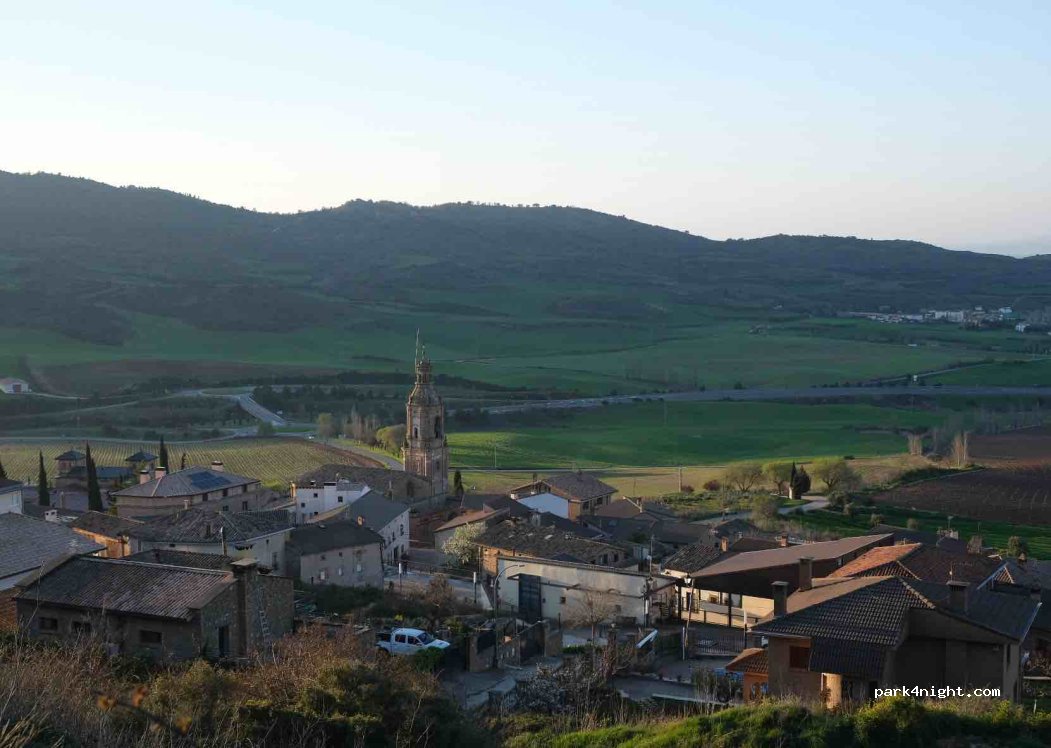 Right above the pretty village of Villamayor de Monjardín, this place offers 3 van spaces. The view over the valley stretches for about thirty kilometers, the panorama is spectacular! There's a small water fountain at the foot of the path that leads up to the castle. You'll have to stall because the parking lot is on a slope, but the view is worth it!