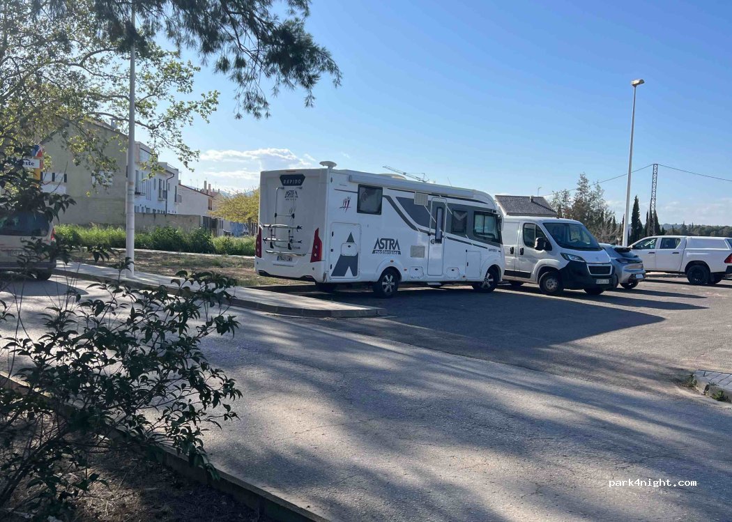 been there during day with my 7m caravan. the parking is to small so max 5m I would say if you don't want to be boxed in. it seams to be used by many locals. I would use this parking more for safety if you going for long bike ride or walks. But for sleeping y would use the other parking possibility which was quiet and no traffic .