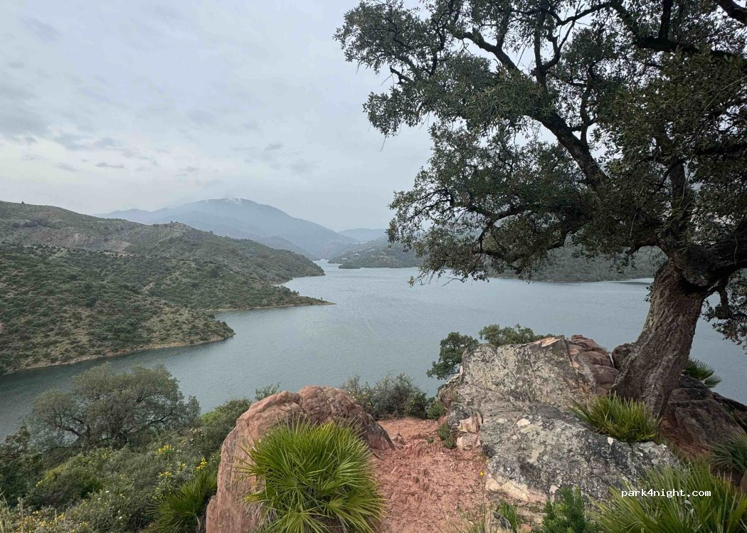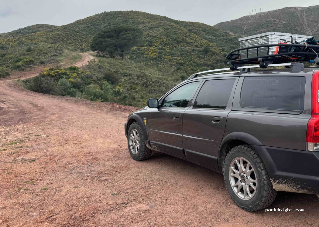 Pequeña zona plana para un vehículo. El camino de acceso puede requerir tracción en las cuatro ruedas y suficiente distancia al suelo. Hermosa vista del lago de abajo. Algunos caminantes y pescadores en la zona.