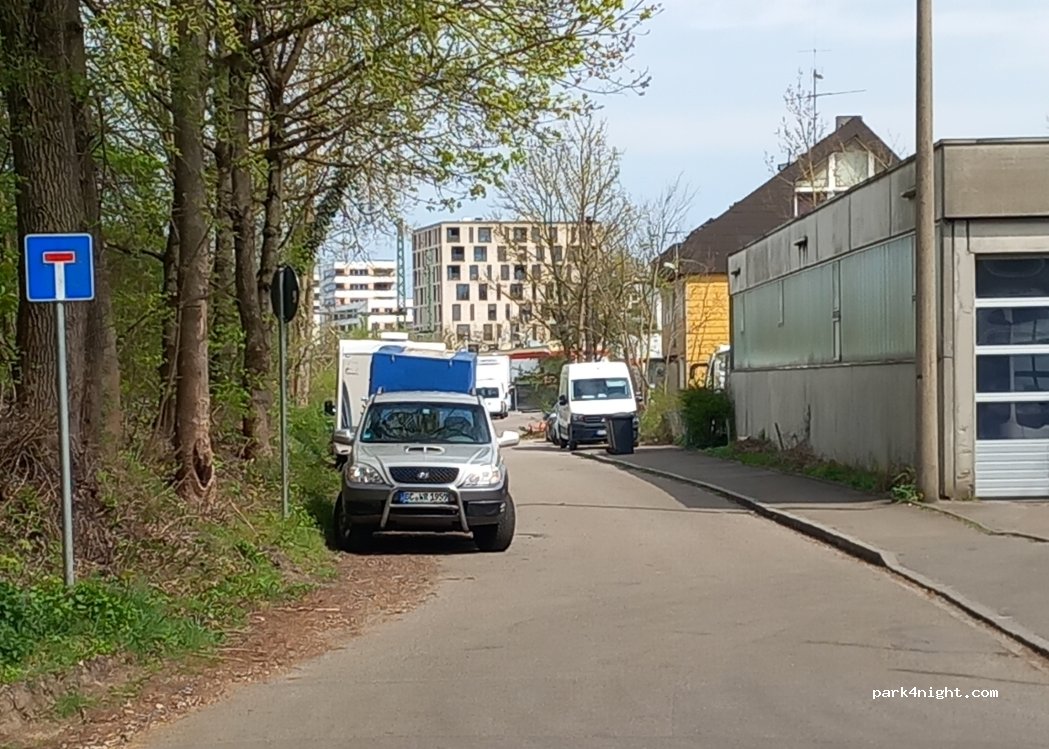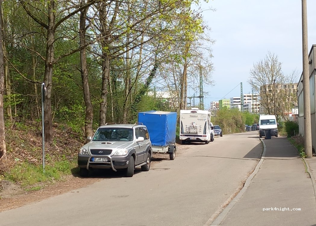 Fręe of charge dead end street close to Bastion 5. Very continental to visit the City center (20 min walking). Railway is directly along the place, but during out stay (8 hours on Sunday) only one train passed by and it was not disturbing.