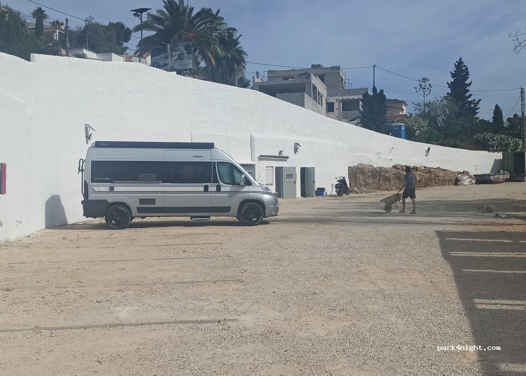 Aparcamiento muy limpio con vaciado de aguas grises, con llenado de agua, situado muy cerca de la Cala, el Portet, a 10 minutos andando del centro de Moraira. Teléfono para contactar con el dueño 24 horas, atención rápida vale mucho la pena este aparcamiento para estar tranquilo de la policía 20 € el día