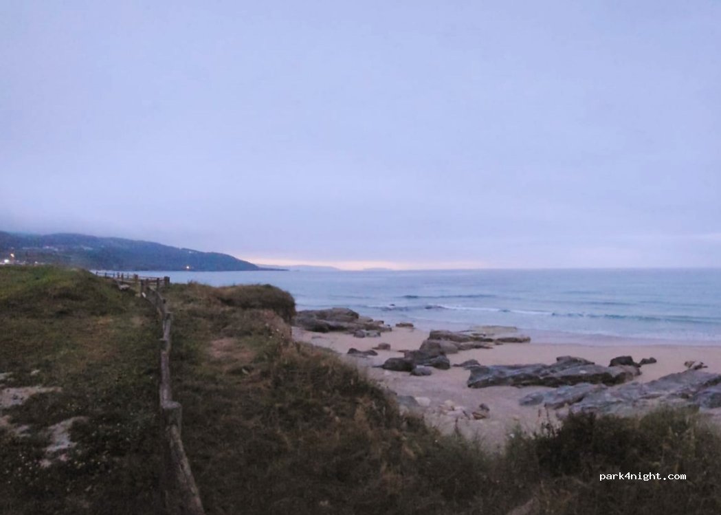 Un lugar espectacular, hay bastantes sitios para aparcar autocaravanas, en pleno mes de junio sin problema poca gente, duermes escuchando el sonido del mar,maravilloso!!!! Hemos disfrutado de la playa y hay un parque infantil a 10metros.