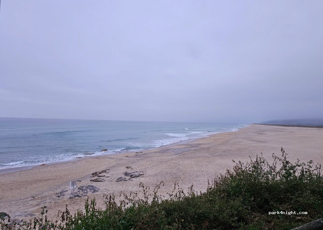 Großer, asphaltierter Parkplatz direkt am Strand. Es gibt Container und Badezimmer (nur während der Strandsaison geöffnet), aber fast alle Stellplätze liegen an einem Hang. Während der Brutzeit (März-Juli) sind Hunde am Strand nicht erlaubt. In der Nähe gibt es Bars und Restaurants.