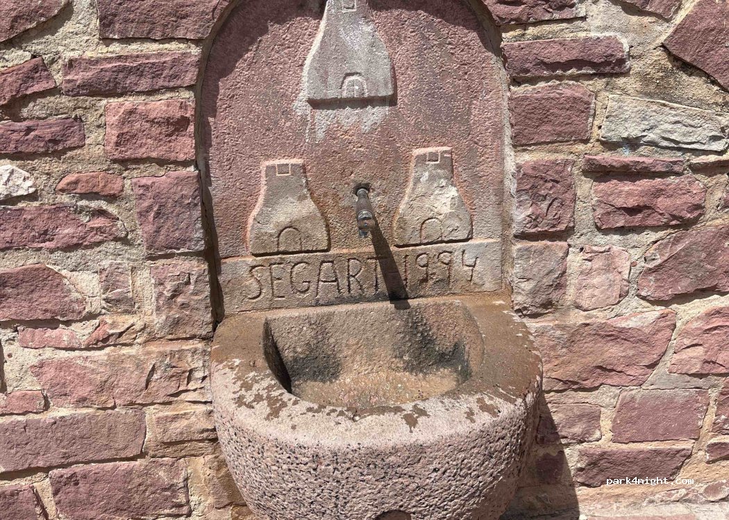 Punto de agua en el centro del pueblo, pocas plazas de aparcamiento.