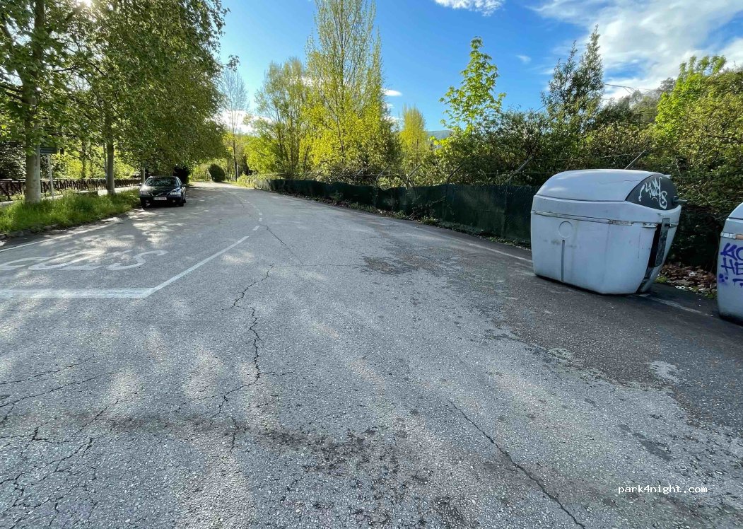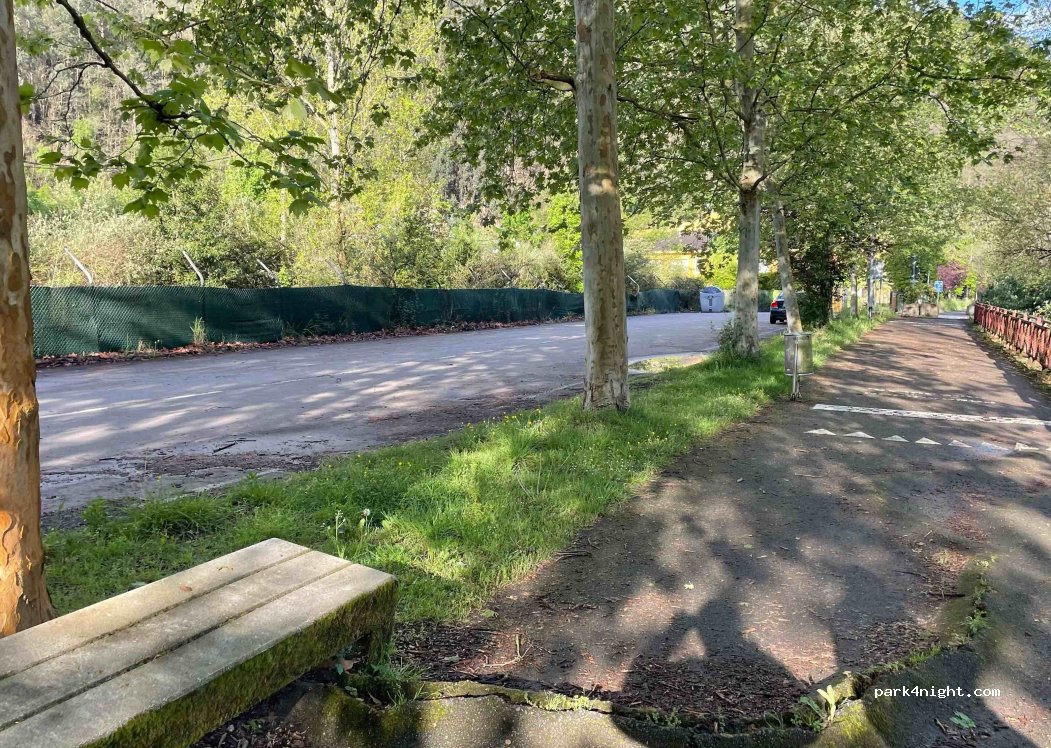 Estuvimos una noche y súper tranquilos. Hay bancos de piedra y luz que se apaga sobre las doce. Nosotros no escuchamos ruido, solo algún coche lejano y pasa caminando alguna persona, pero mientras estubimos, solo dos. Se oye el rio pero no molesta nada.