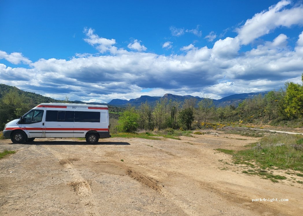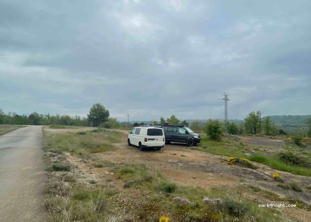 Un lugar agradable y tranquilo junto a una pequeña carretera (casi exclusivamente para ciclistas), con vistas y numerosos senderos naturales. Caben cómodamente unas tres furgonetas, y el camino hasta aquí está asfaltado.