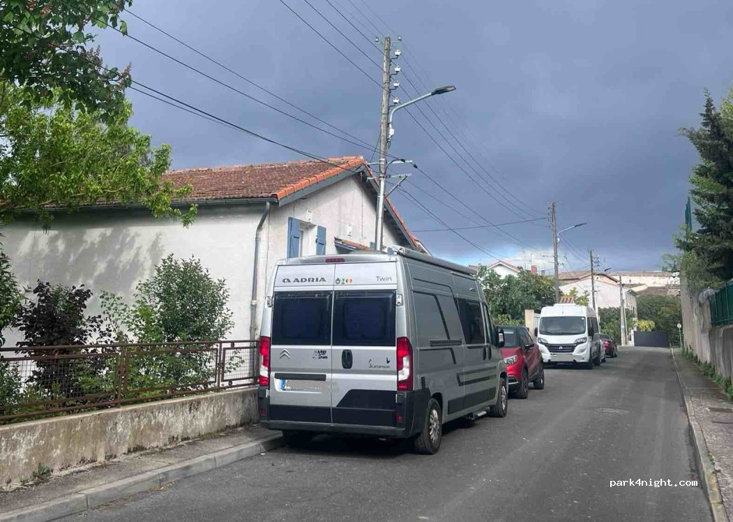 A quiet street, a 5-minute walk from the walls of Carcassonne. We parked twice because the surrounding parking lots were full. We went with Jumper.