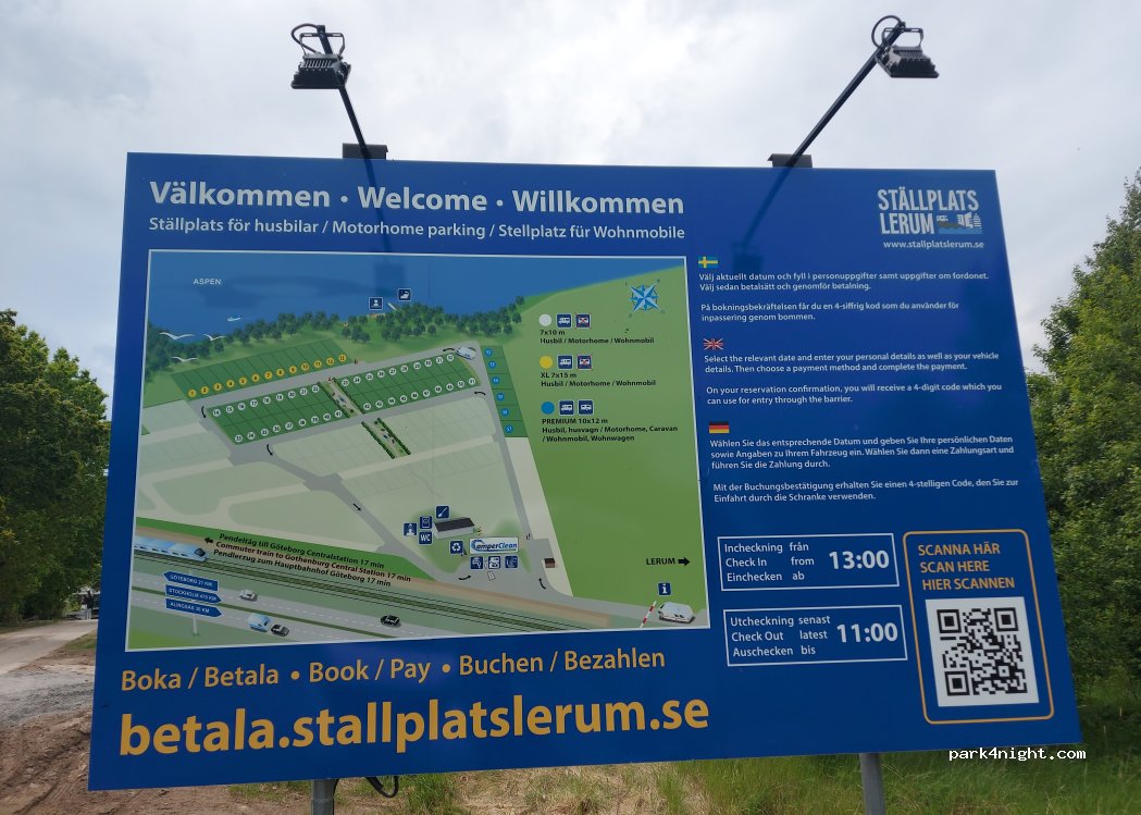 Stallplatslerum.se You absolutely will enjoy the comfort and brevity of this location. It is not a traditional camping ground. But rather just a functional parking place for an overnight that has everything you. There are free, washer and dryer, clean, hot showers, and toilet toilets, locations to empty all your different tanks and waters, and refill. Sorted trash containers. Electric did a recite. Wi-Fi, although we were not able to access it. All in a beautiful setting. The lakefront is lovely, and better weather we would’ve enjoyed it greatly. There are trees and grass and zones for pets. A large sink for washing dishes. There is no common room, no social center, no kitchen for food prep. It is a functional overnight parking place to service your rig and possibly go enjoy the city. IMPORTANT - you absolutely must sign up on the website prior to arriving. There is a code required at the gate, and you cannot enter without a reservation. The website is a little difficult, don’t push the buttons too many times, be patient. You can pay by credit card. Once you pay, you will receive a confirmation receipt, and your gate code is hidden on there somewhere. That code will also open the bathroom.