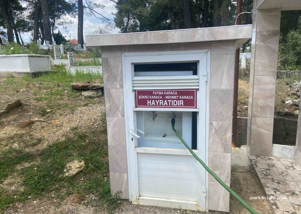 Grifo de agua frente a la mezquita. Tiene diferentes grifos. Dos de ellos incluso fueron refrigerados mediante un aparato de refrigeración. Baño público para mujeres y hombres. Estás parado cerca de la carretera tranquila.