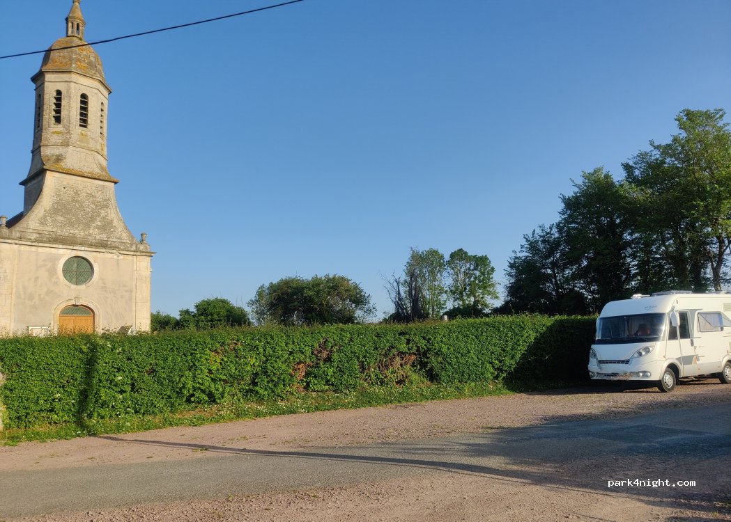 Nous avons passé une nuit tranquille, sans bruit, sans passage, terrain plat, près de l'église en pleine nature.