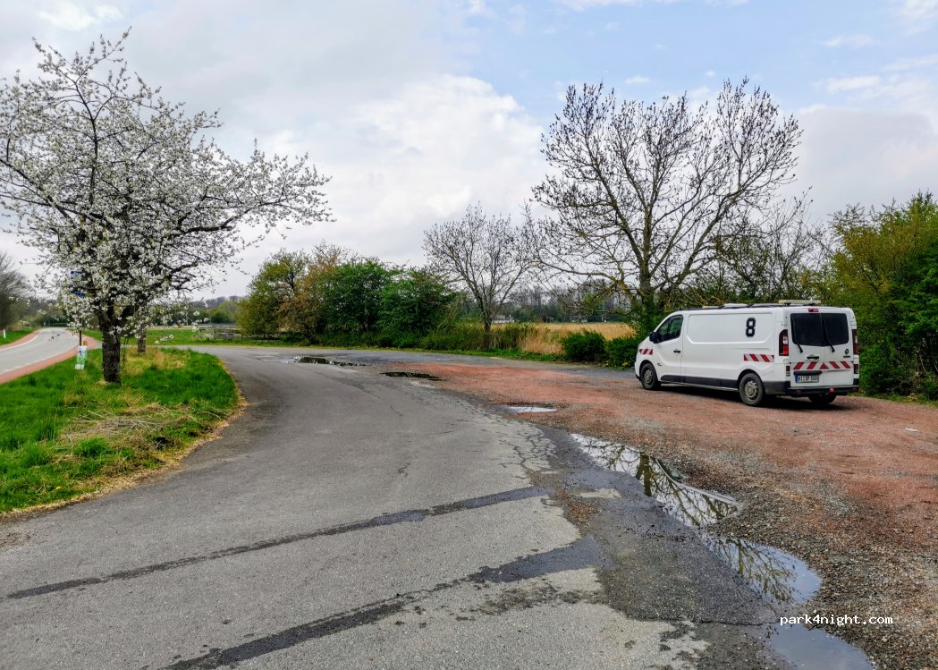 Einfacher Parkplatz ohne alles am Rande der Straße.