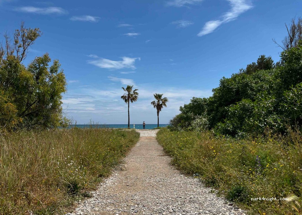 Platz für 4 Transporter. Asphaltiert. Neben dem Campingplatz und mit direktem Zugang zum Strand. Brunnen, um den Sand von den Füßen zu waschen.